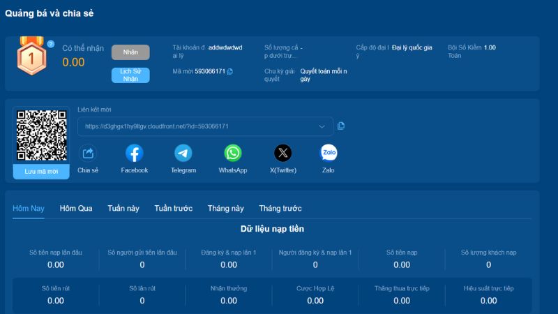 - Nhấp vào mục [Đại Lý] trên trang chủ để lấy liên kết độc quyền này.